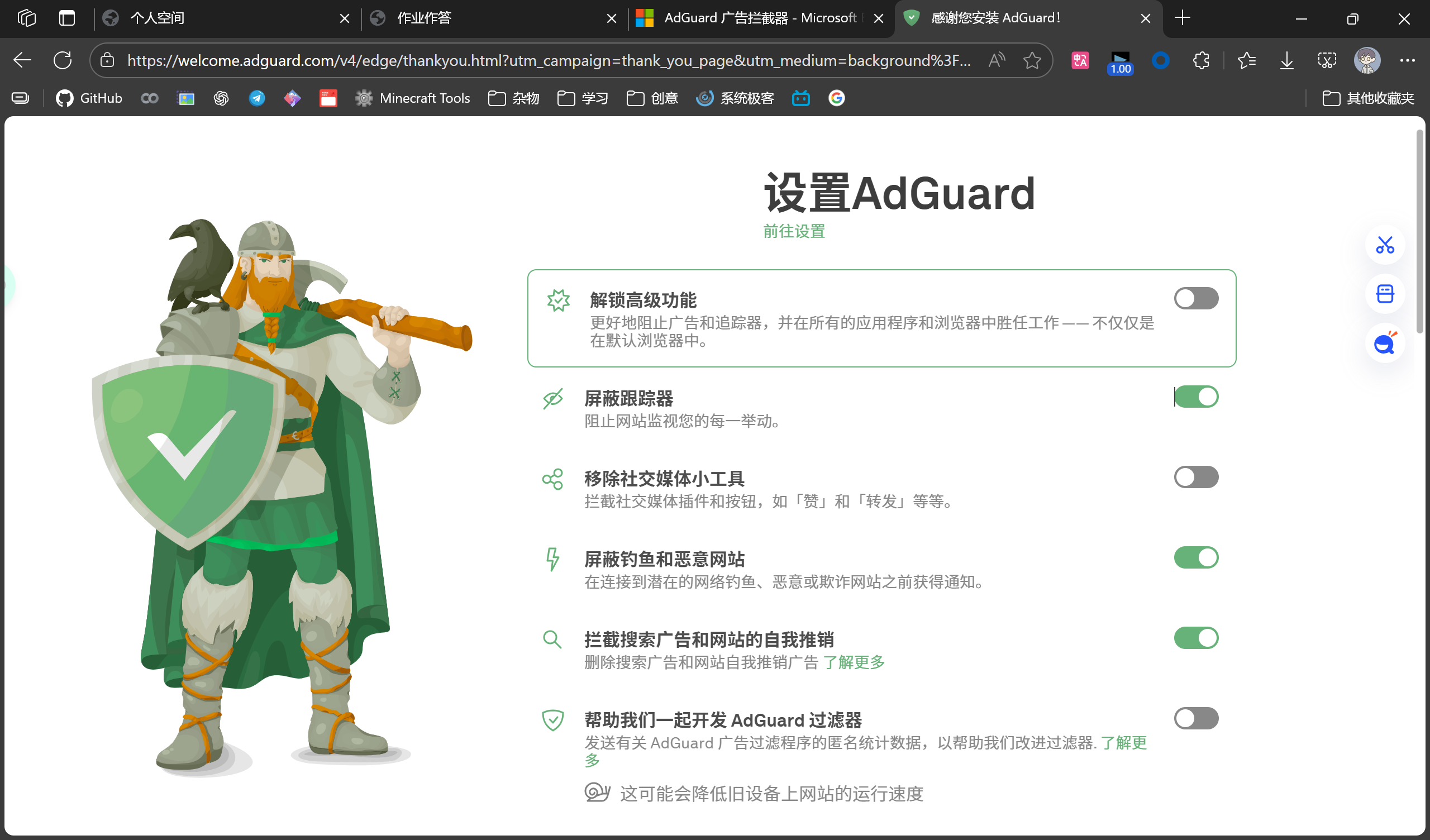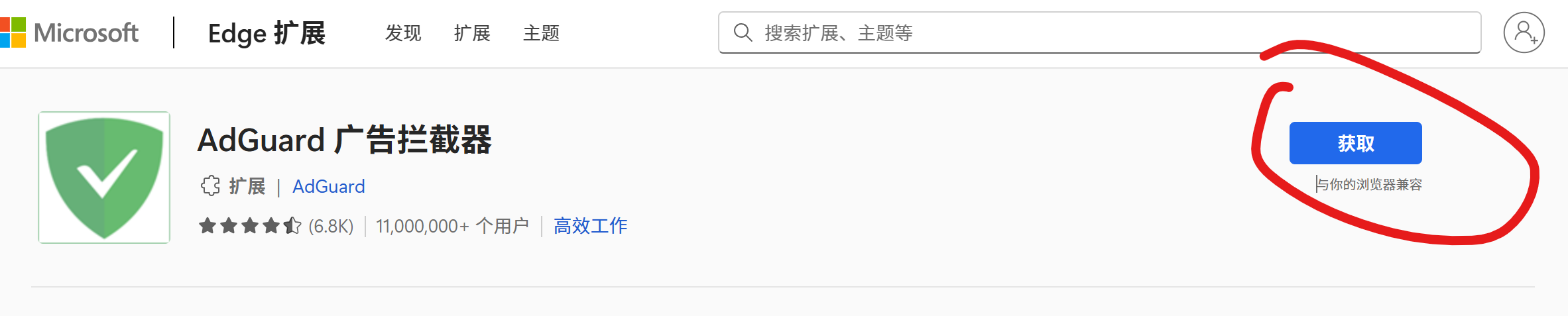 单击前往 Edge 扩展 网页来安装 AdGuard 插件。